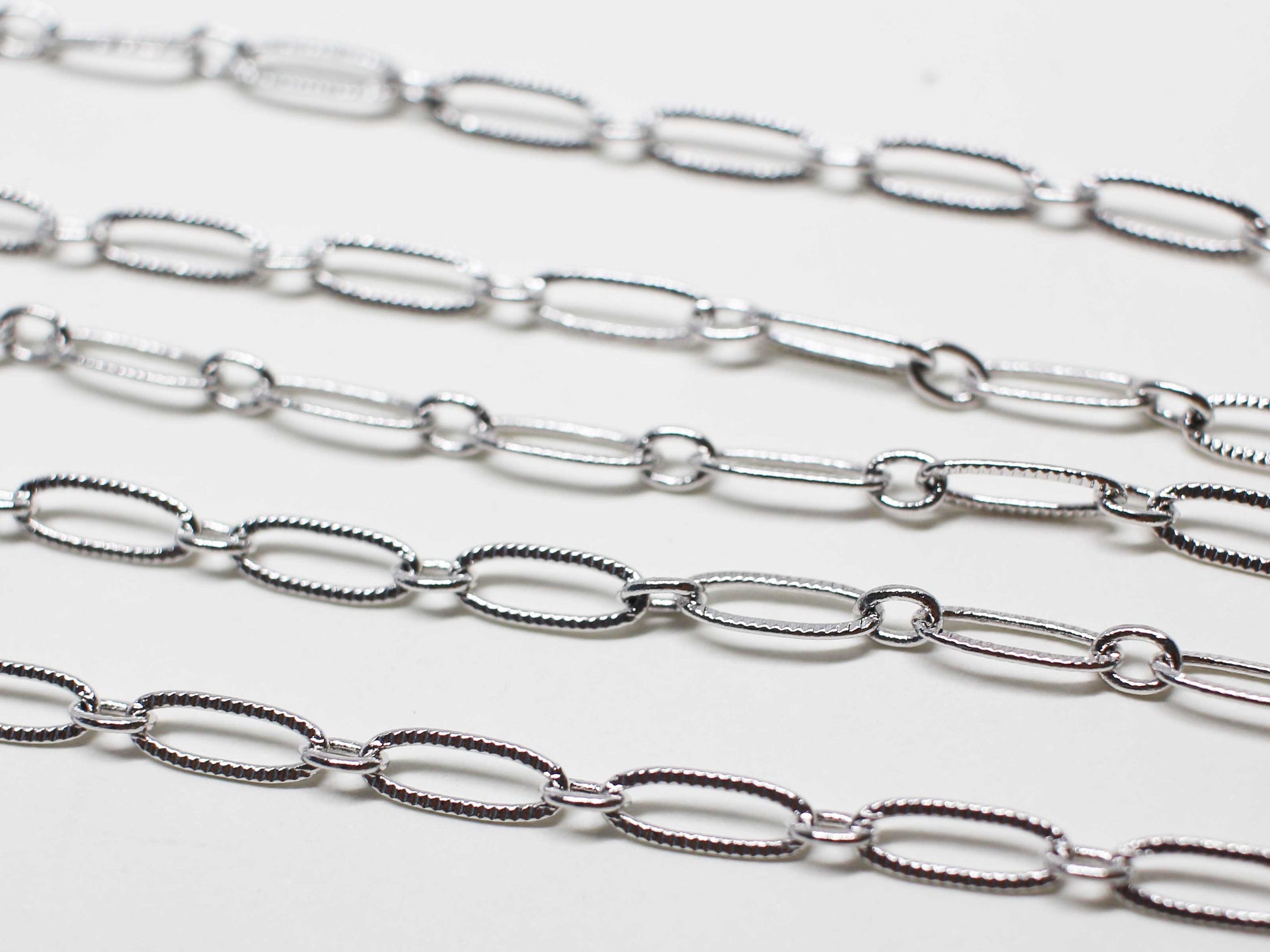 Rhodium Plated Textured Oval Chain